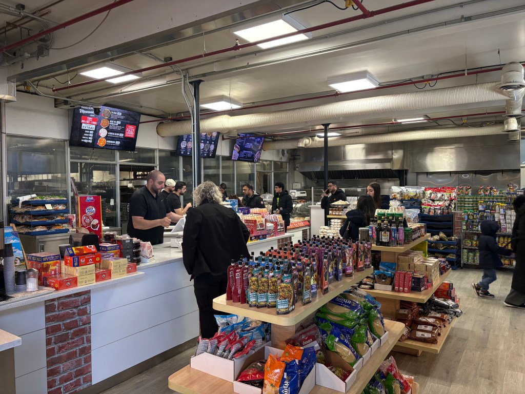 Mohamed asked for a few minutes to prepare everything and invited me to help myself to tea. I wandered around the shop, admiring shelves lined with tahini, spice blends, juices, and desserts. A steady stream of customers came through, many leaving with stacks of pita and trays of food.