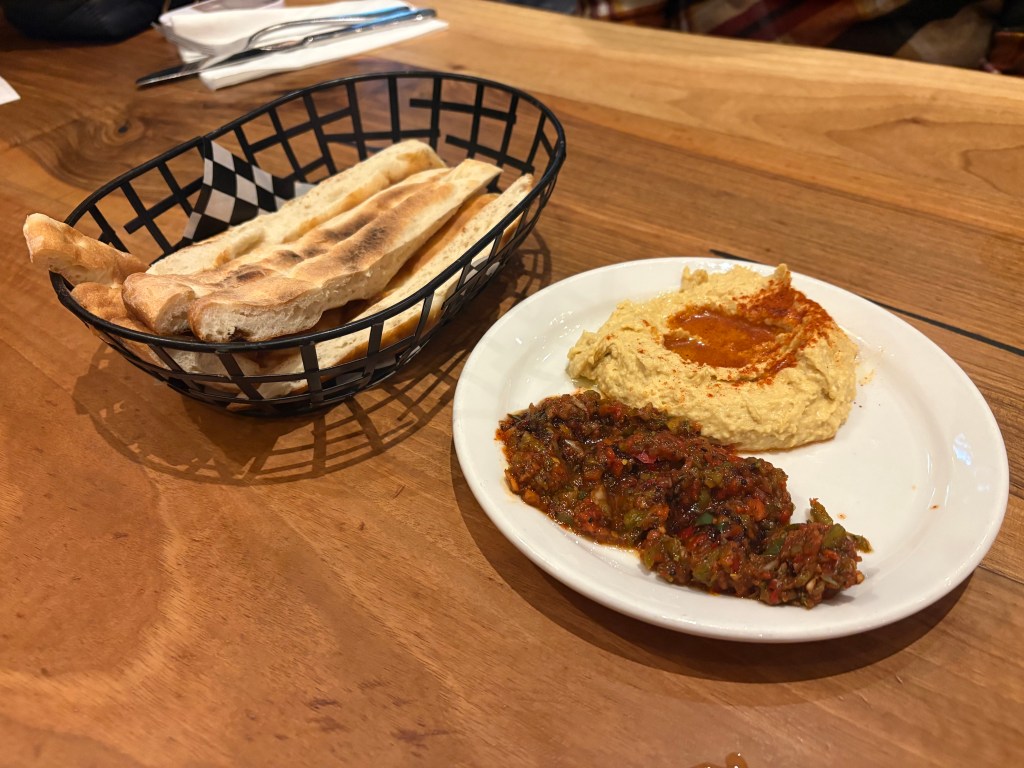 The service is calm and proficient. Soon after, our order was taken, and glasses of water and bread, hummus, and acili ezme, a spicy vegetable dip, were dropped off. We gobbled down the warm, chewy bread with hummus and tangy vegetable dip. I could really taste the bright red pepper characteristics in the acili ezeme. We didn’t have to wait long before our food arrived.