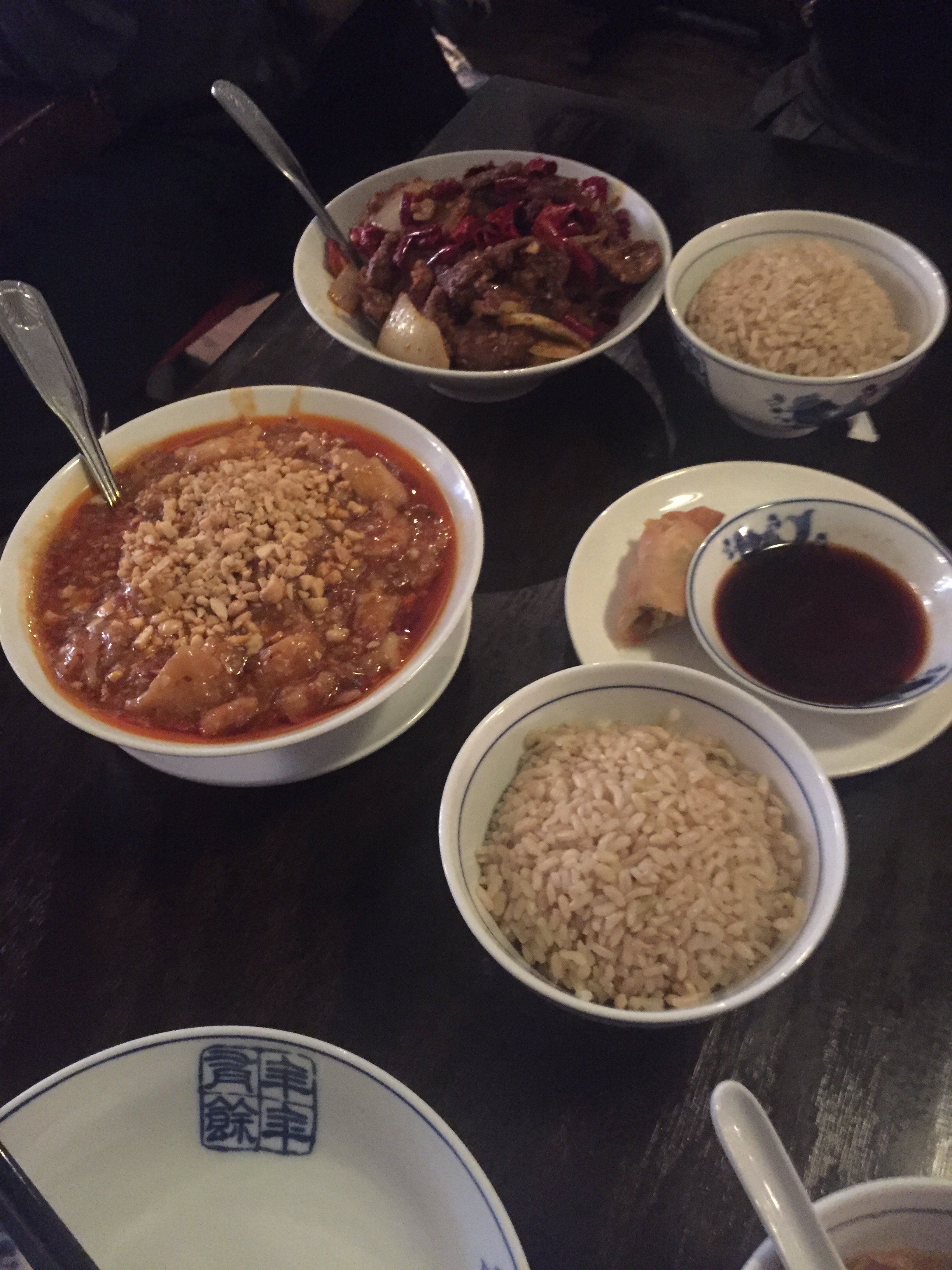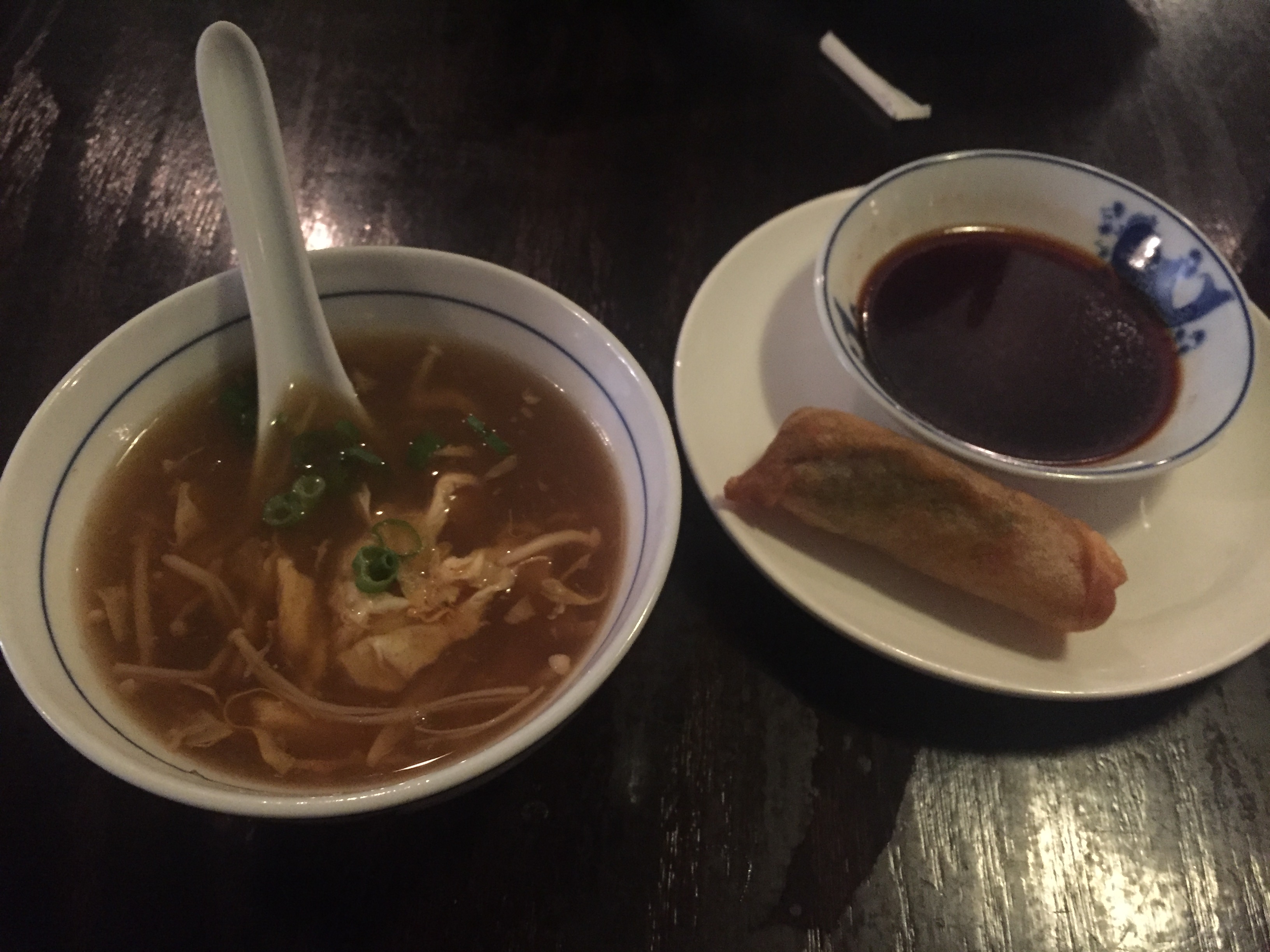 We picked two of the most popular dishes – the Braised Fish Filet with Tofu ($13) and the Spicy Cumin Lamb ($16). Beep Beep asked for no cilantro so I could eat the food. I should have asked for less spice, because Beep Beep found the food too fiery. Our lunch specials included white or brown rice and a choice of hot and sour soup or a spring roll.
