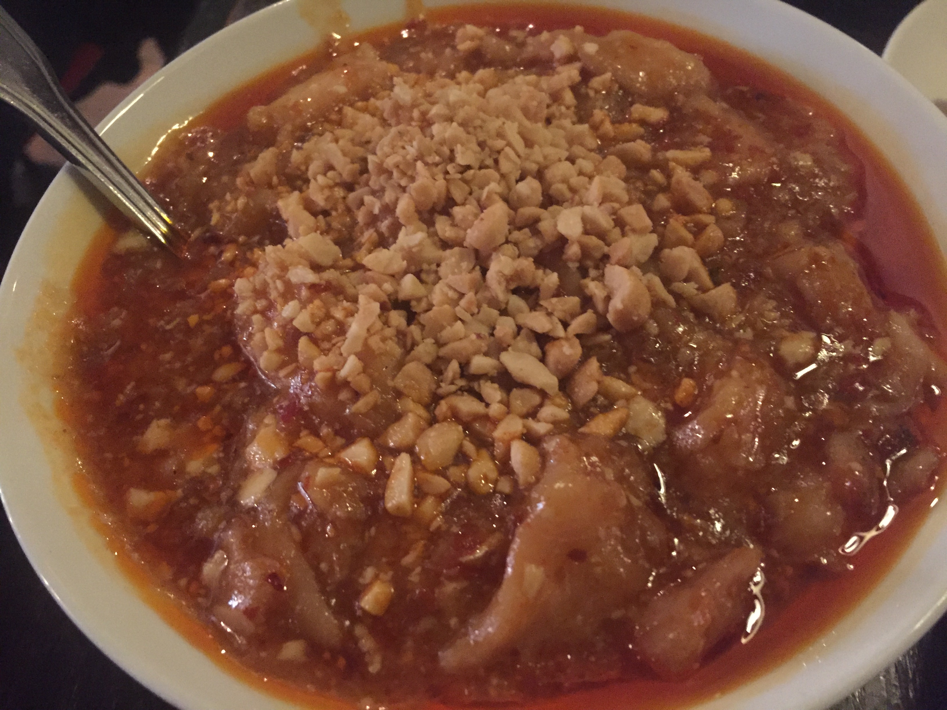The fish was soft and blended in with the crumbled pieces of tofu. I liked the the topping of peanuts, which gave the dish some needed texture. I didn’t find the fish hot at all but Beep Beep said it burned her mouth.