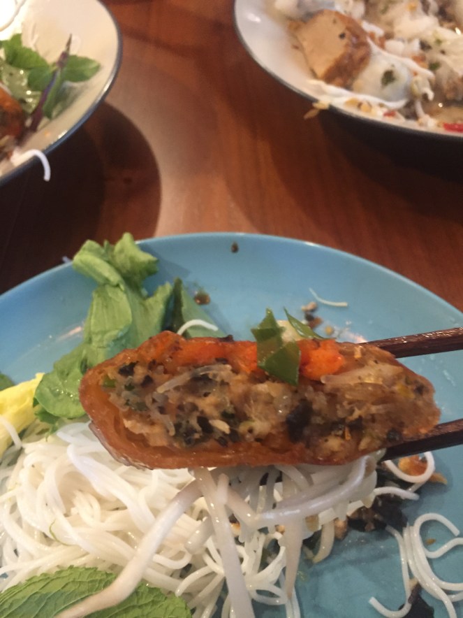 The mixed mushroom and noodle filling was very tasty. L noticed that the noodles were thicker, smoother and bouncier than the usual vermicelli noodles at Vietnamese restaurants.