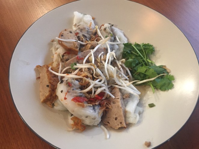L and I both enjoyed the slices of pork. The texture reminded me a bit of a fish cake. The flavours were perfectly balanced – there was no jarringly sweet or sour notes. The softness of the rolls contrasted with the fried shallots and steamed bean sprouts. The sprouts tasted sweet and clean. The portion was so generous that I gorged myself and still had leftovers.