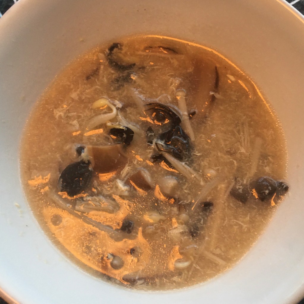 In the soup, there was an earthiness from the assorted mushrooms and a saltiness from the lobster. The texture reminded me a little of hot and sour soup, cloudy and chock full of ingredients.