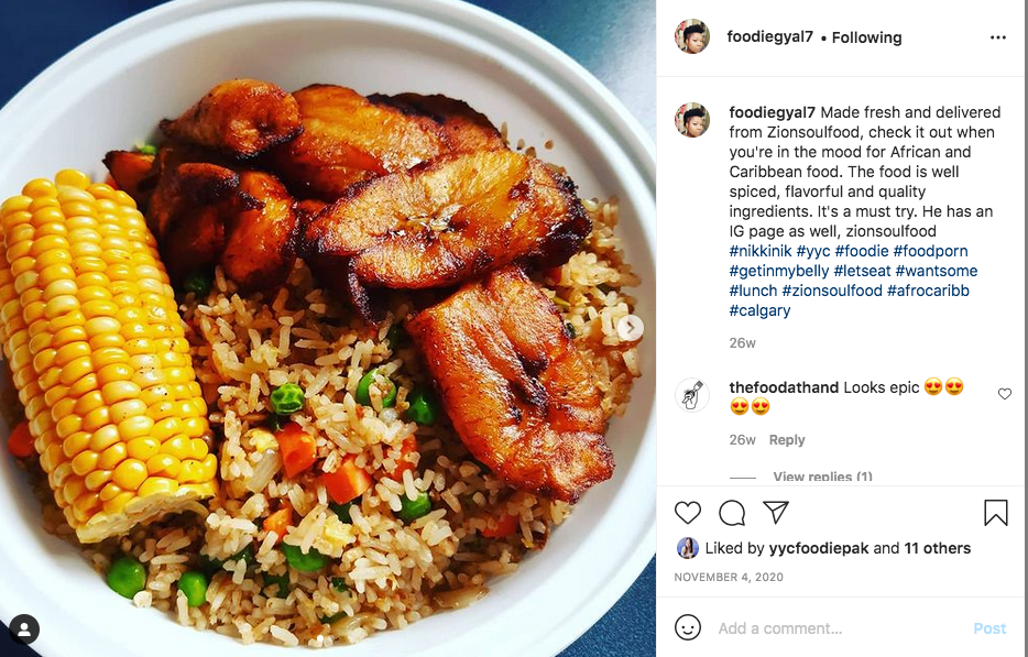 Zion Soul Food is a catering business that specializes in authentic Caribbean and African soul food. For 15 years, the owner, chef and founder of Zion Soul Food – Randy Agyei – cooked in Toronto. Last year, he decided to leave the “Centre of the Universe” because he wanted to bring good food to Calgary. For this post, let’s play “Soul Man” by Sam and Dave.