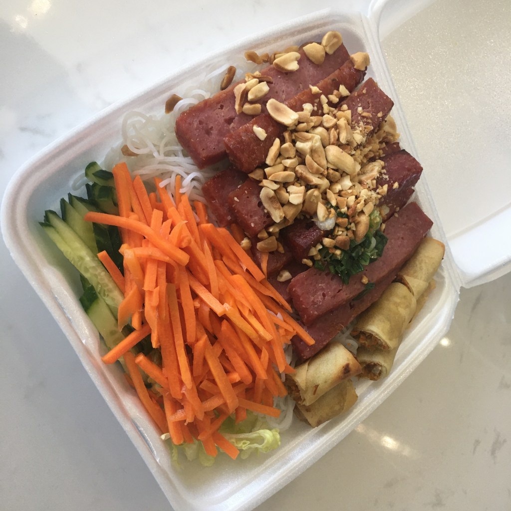 L enjoyed his dish. The charbroiled pork in L’s meal was salty, with a texture similar to the grilled pork meatball at Cuty Restaurant. The noodles were rounder and thicker than the standard vermicelli noodles. The portion was so generous L could only eat half his serving. I noticed there was an absence of bean sprouts. The spring rolls didn’t travel well. By time we ate, the spring rolls were soft. The nuac cham (dipping sauce) tasted strongly of fish sauce and vinegar.