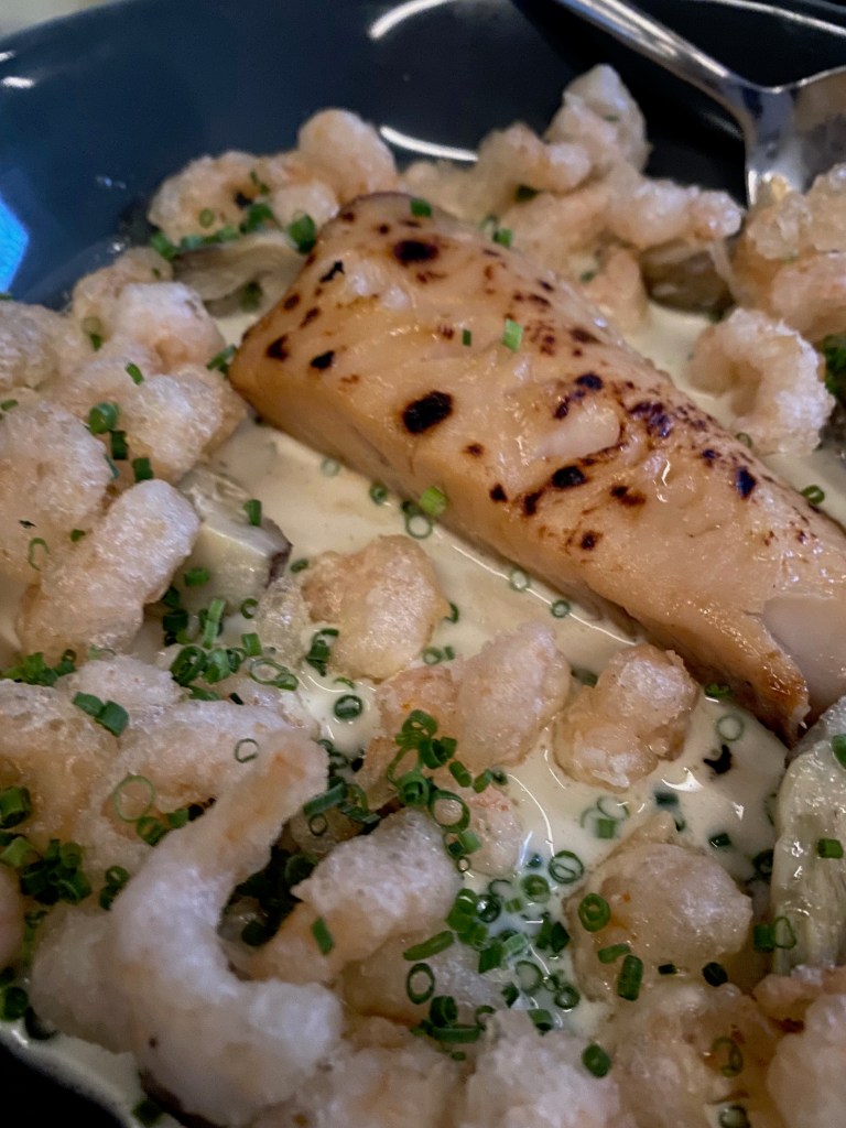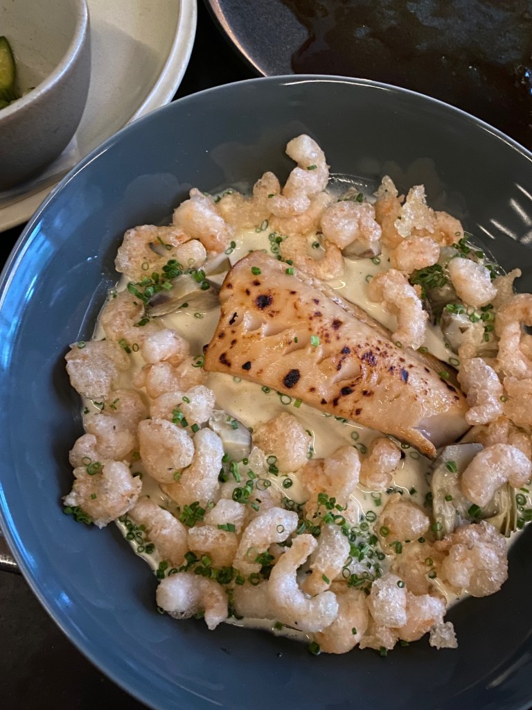 Each layer of the artichoke was silky soft, drenched in a light citrusy matsutake beurre blanc sauce. The shrimp was delightful – the batter was as light as tempura. My favourite part of the dish was the miso sablefish. The fish was so tender and flaky, with an incredible buttery texture. I would order this again but I can’t unless I become a member of The Ranchmen’s Club.