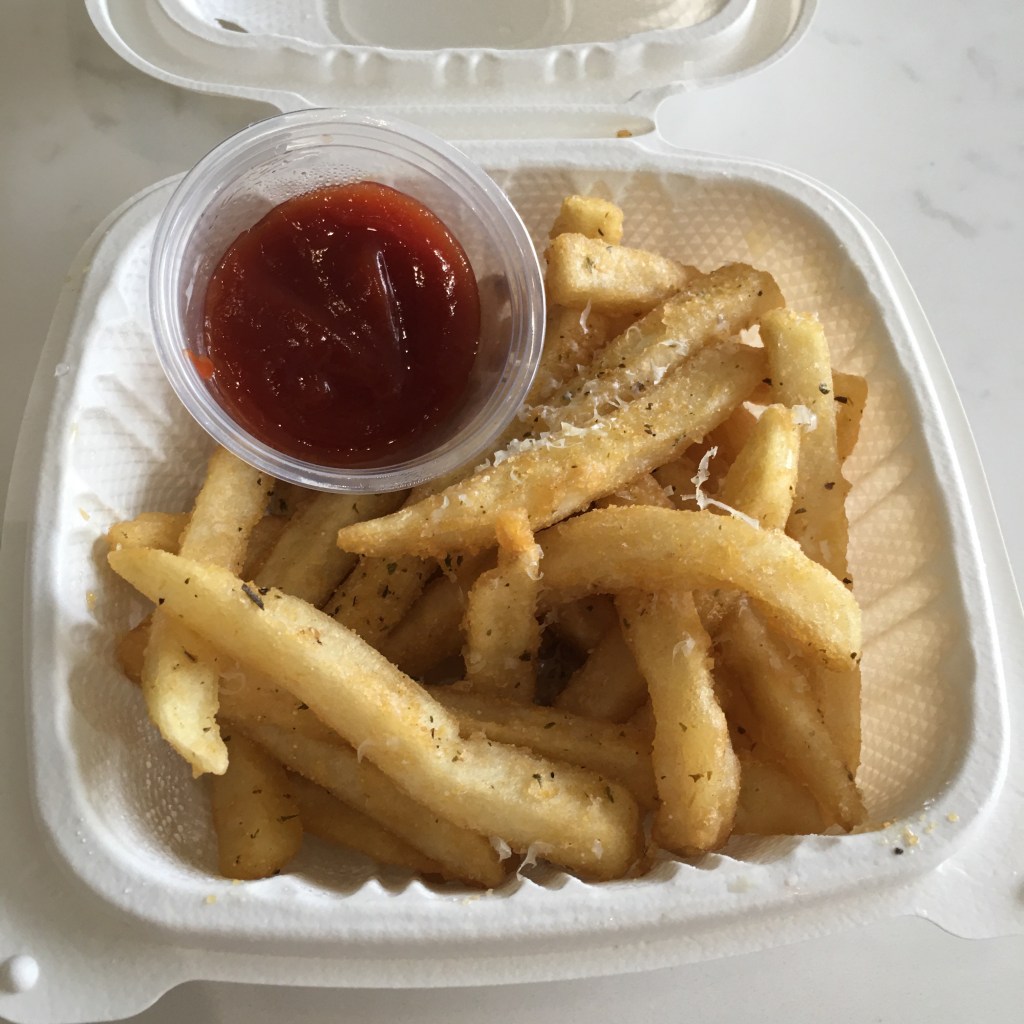 L is a fan of the parmesan garlic fries. The seasoning is lemony with a hint of sugar. He said the sweetness in the seasoning reminds him of Wow Chicken’s bulgogi fries, but better because Pure’s version is more subtle. L noted that even the ketchup was different and tastes like a homemade sweet chili sauce.