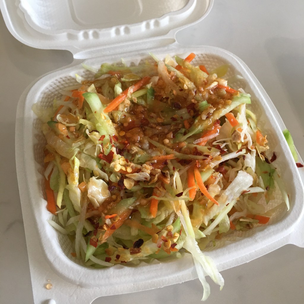 I enjoyed the salad – an Asian-style slaw with shredded lettuce, daikon and carrots. I found the salad light and refreshing, a nice contrast to the richness of the sauces in the subs.