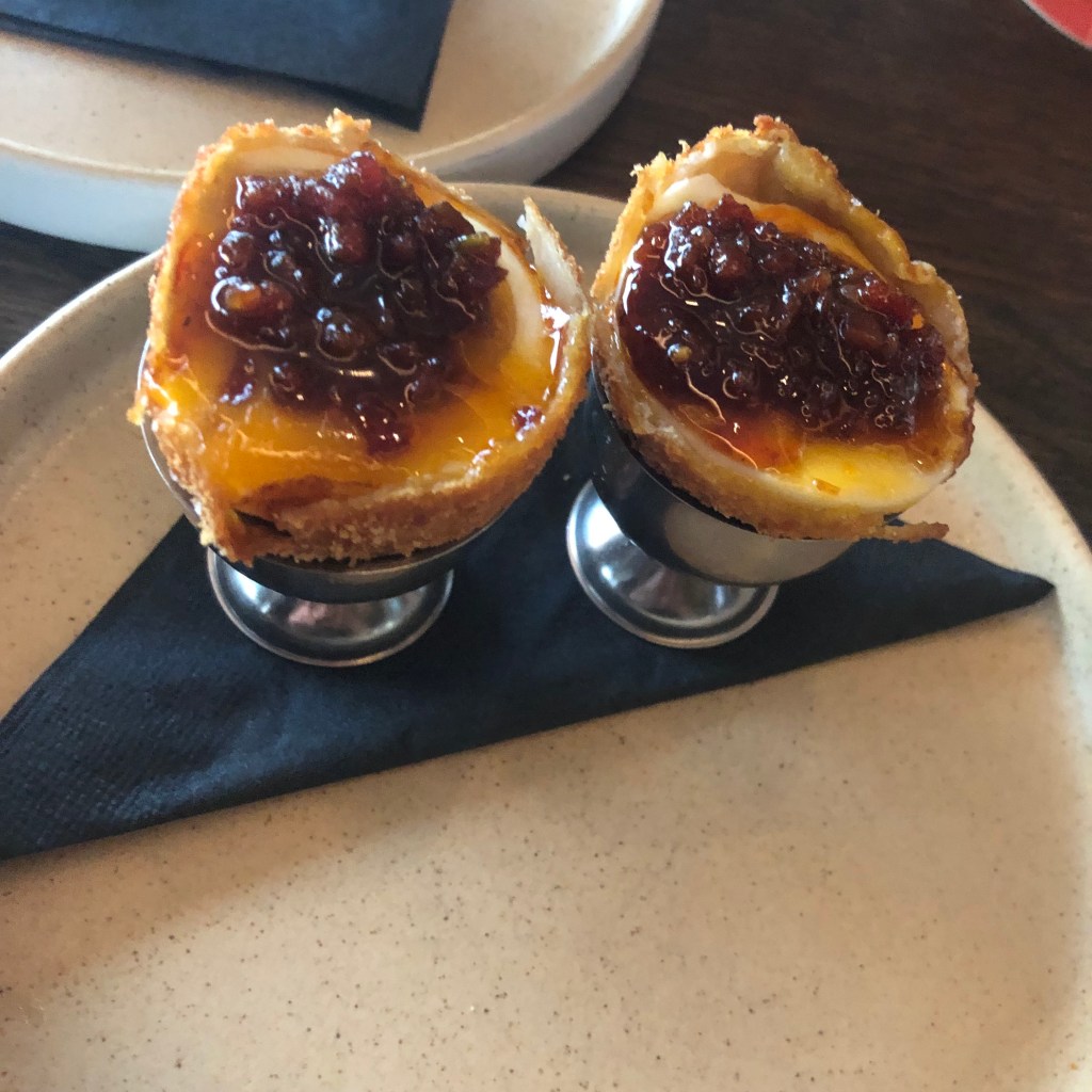 We shared two orders of the Crispy Hen Egg ($6). This little sucker was delicious. The fried shell added a nice crunch, which contrasted to the creamy, warm yolk. Texture, style and with exploding flavour, this appetizer has it all. I would order this again.