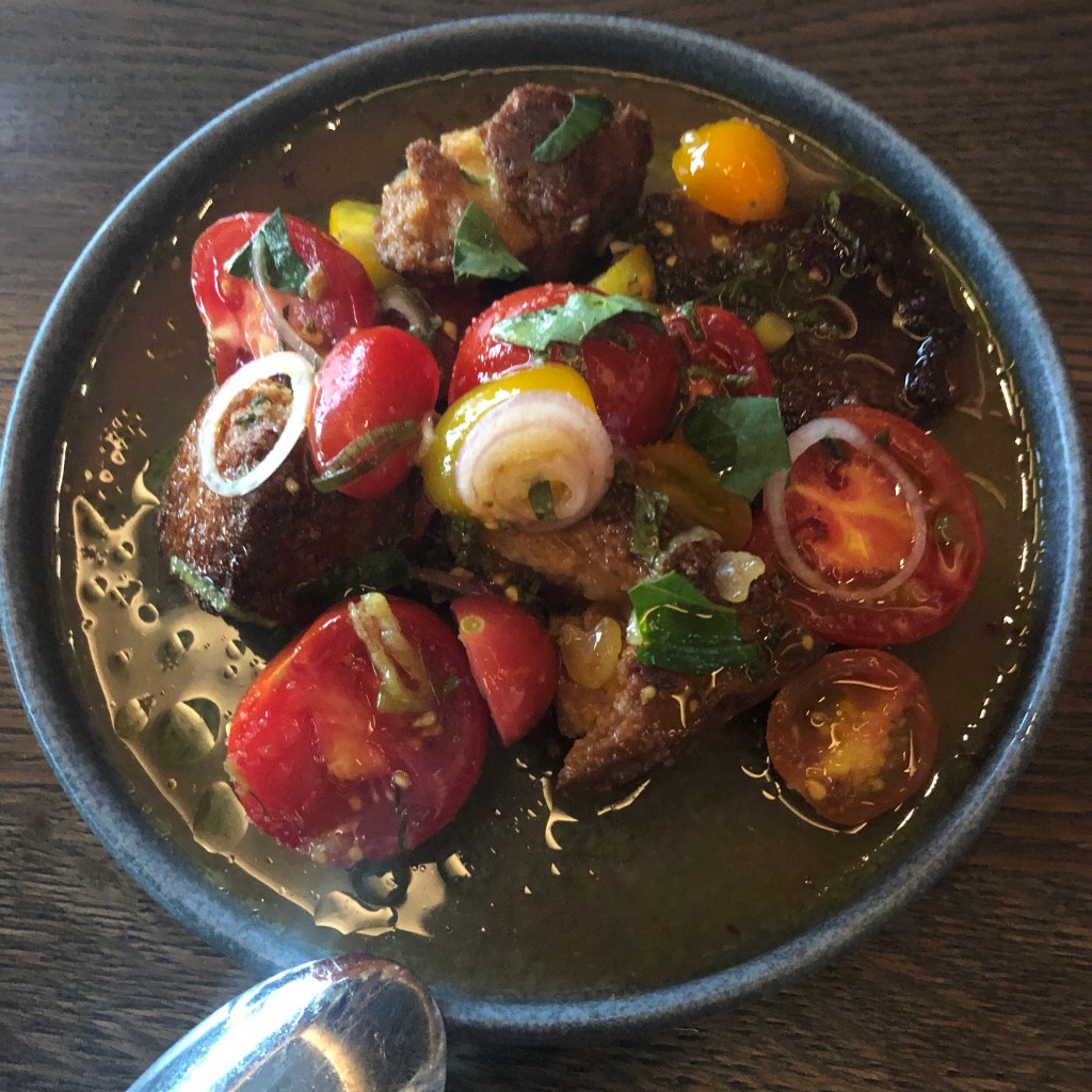 I always get what Miss Foodie raves about on her Instagram account, so I chose the Tomato and Brioche Salad ($14) and Steak Frites ($34). Warning – my photos are worse than usual. I was so giddy to be out with my friends, I didn’t put in the effort to take a decent photo.
