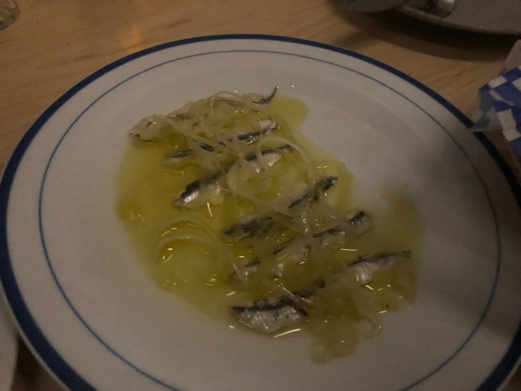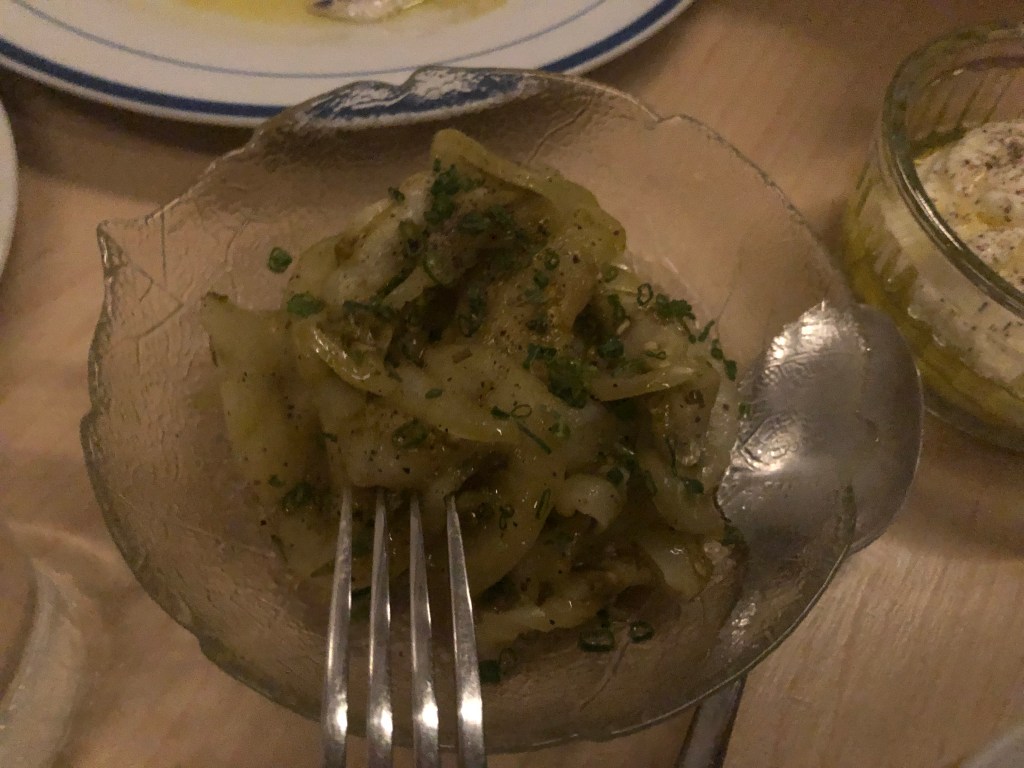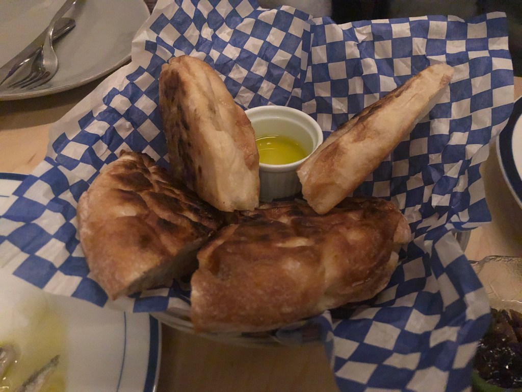 Our server instructed us to eat the anchovies with ricotta and bread. What a knock-out pairing! The ricotta was cool and creamy, rich like whipped cream. The anchovies were bursting with umami – salty and pungent. I appreciated the crunch of the white onions against the oily mixture of fish and bread. This was my favourite bite of the night.