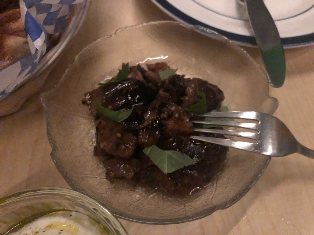 L doesn’t generally like eggplant, but he declared D.O.P’s version excellent. The eggplant was soft, tart and smokey. L thought he could taste balsamic in the eggplant.