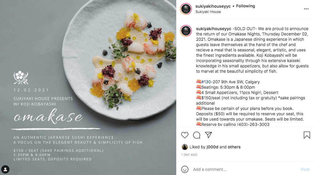 On Friday, we celebrated L’s birthday at Sukiyaki House. On that particular night, because the restaurant was short-staffed, I couldn’t request omakase (a special menu curated by the chef). L said that was fine with him, as everything off the regular menu is exceptional. For this post, let’s listen to “Waltz for Roxy” by The French Note.