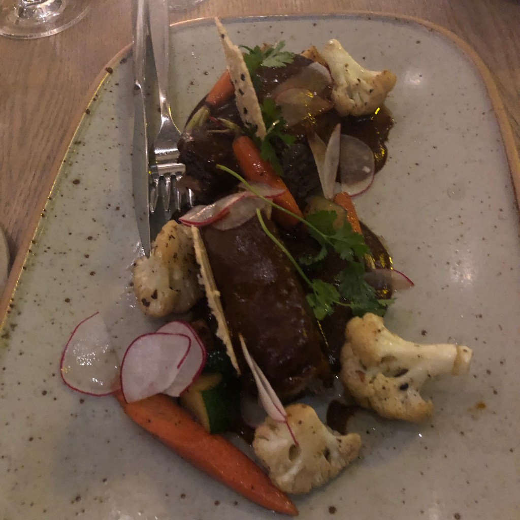 The Costilla de Res en Mole Poblano ($34) came with three chunks of braised beef short rib, turnips, cauliflower and baby carrots. The vegetables were beautifully cooked – so that each retained its unique texture and flavour. The beef wasn’t as tender as I would have preferred.