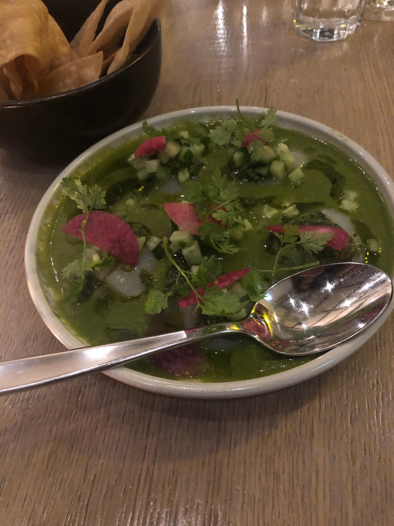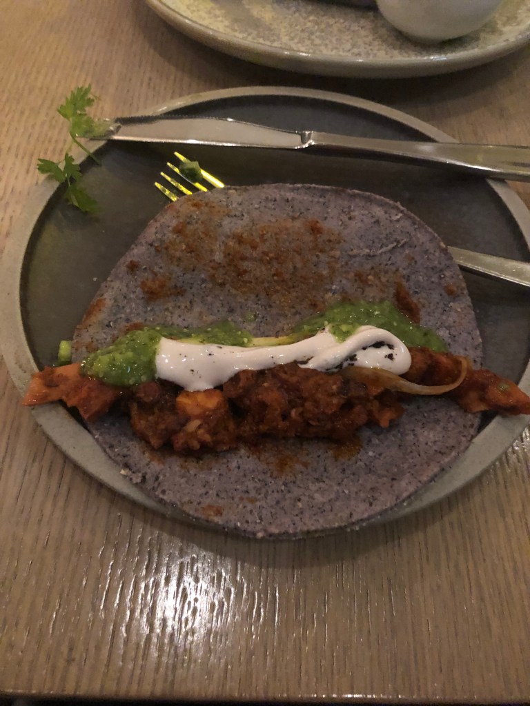 The best dish of the night was the Scallop Aguachile ($22). The scallop was served sashimi-like – cool, silky and pure tasting. Kournikova raved about the macha verde. I enjoyed the spicy heat, the vibrant flavours and the peppery slices of watermelon radish. The scallops were Kournikova’s favourite dish of the night. I would order this again. Kournikova mentioned that all the appetizers were larger than she expected.
