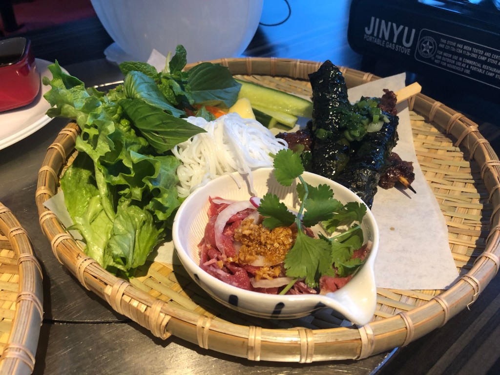 L and I ordered the Wrap Two Combo ($20) and one Seven-Course Beef Set ($35). Next time, I would pick the beef set and not the Wrap Two, as the items in the wrap combo are also in the beef set. Instead, I will order the Shrimp and Yam Beignets ($12), Bun Man ($15), and Bun Bo Hue ($15), which I hear from trustworthy sources are stellar choices.