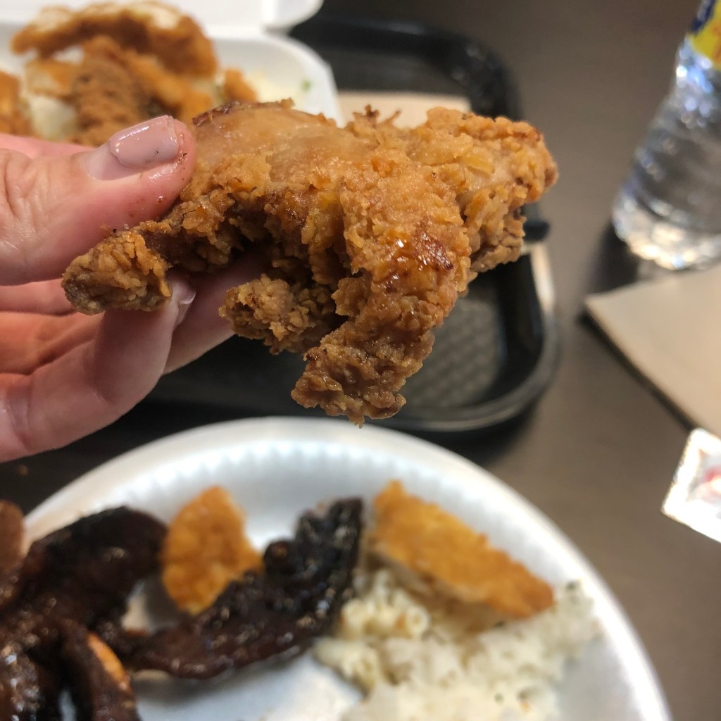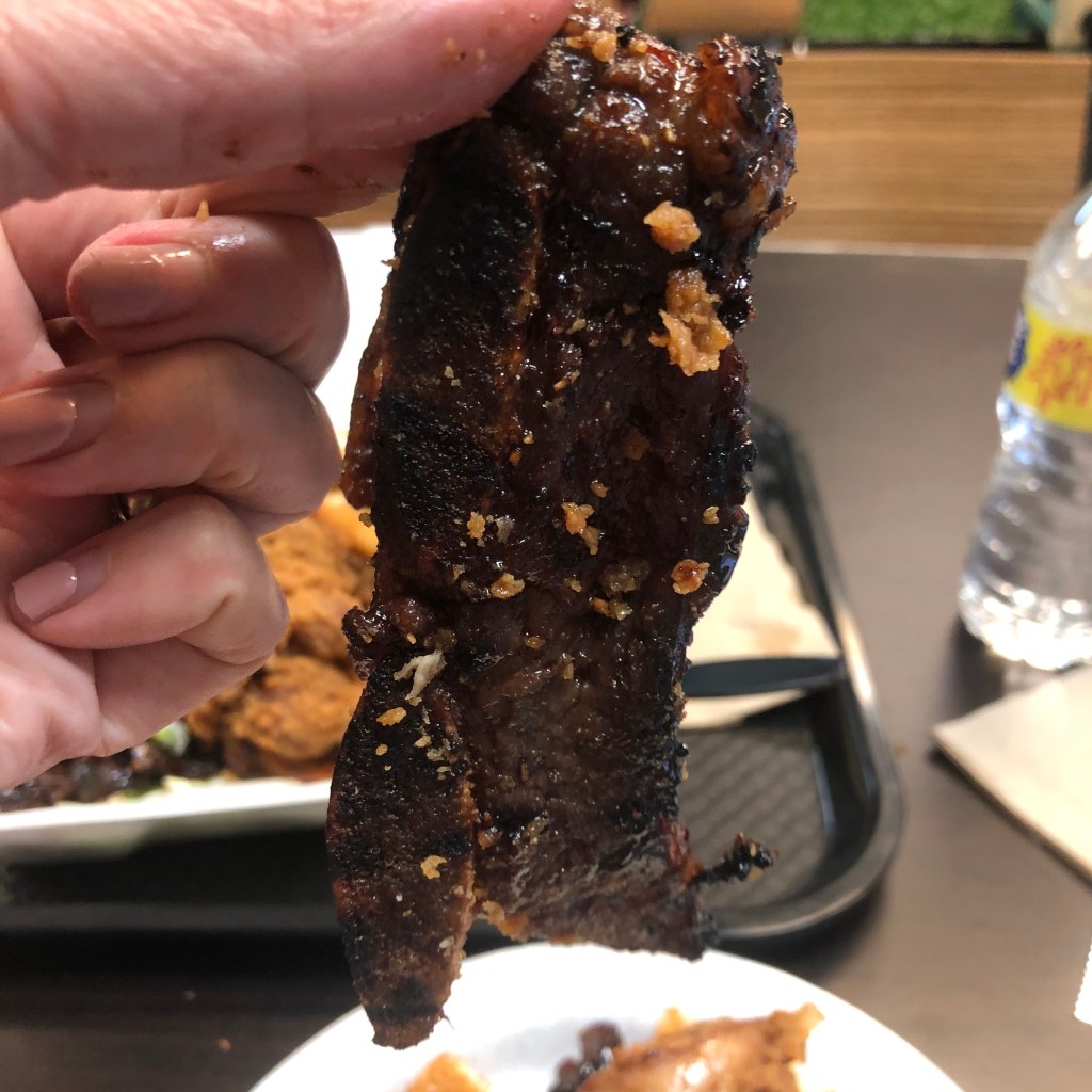 Our Uber driver told us to avoid the “bums” around the strip mall. We didn’t see any, but we appreciated his concern for our safety. I told Jacuzzi to make sure he tipped our driver. We arrived when Lefty J’s Island Favourites opened at 10 a.m., but there was still a group from Singapore ahead of us who ordered a huge feast. We ordered what Strictly Dumpling recommended – the Five Meat Platter ($25.99). The owner told us our food would take twenty minutes.