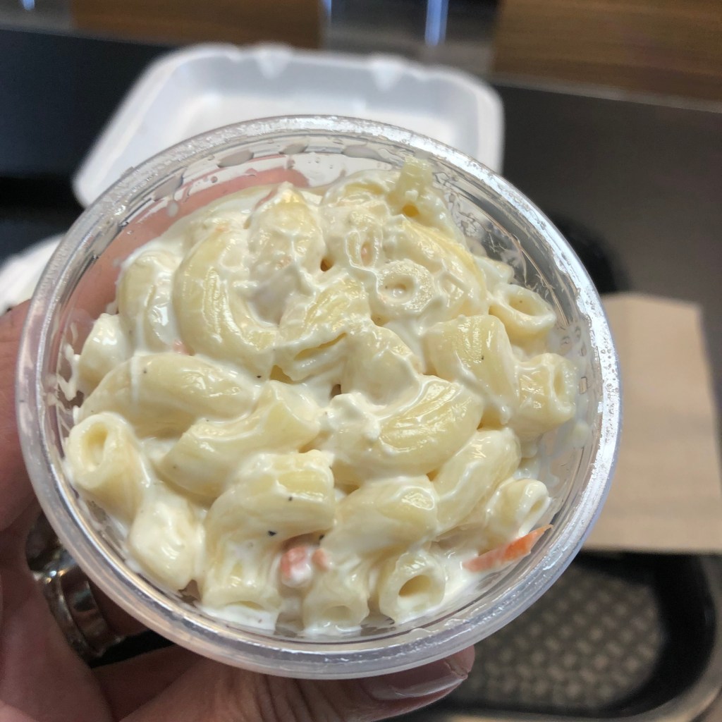 I loved mixing the bites of meat with rice and julienned cabbage, as the crunchy greens helped to cut into the fatty, rich flavours. The side of macaroni was refreshing, slippery, creamy and cold. By the time we polished off the platter, we were both in a food coma.