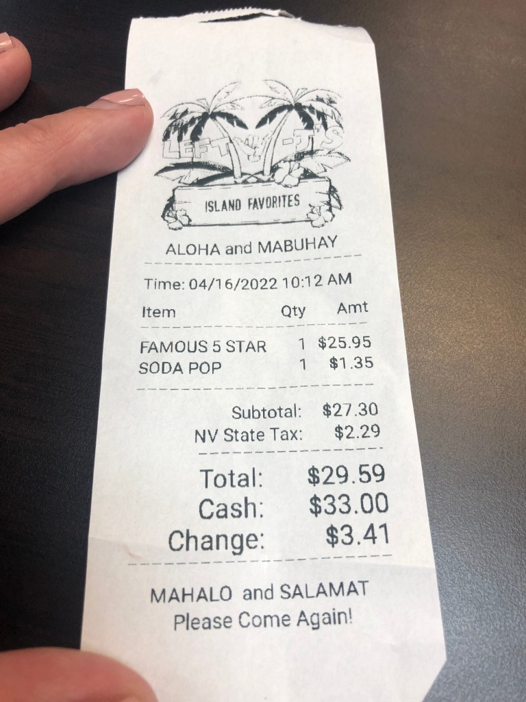 For our first breakfast in Vegas, I picked a place recommended by Strictly Dumpling. Like most of Mikey Chen’s recommendations that appealed to me, Lefty J’s Restaurant is located off the main strip. Let’s listen to “Gone Away” by Offspring for this post. Jacuzzi complained that Offspring is so 90’s, but hey, that’s the era we grew up in.