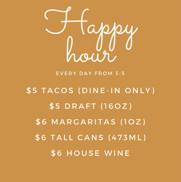 We made it just in time for happy hour. Every day from 3:00-5:00 p.m., Vegan Street offers five-dollar draft beer and tacos and six-dollar margaritas, house wine, and tall beer cans.