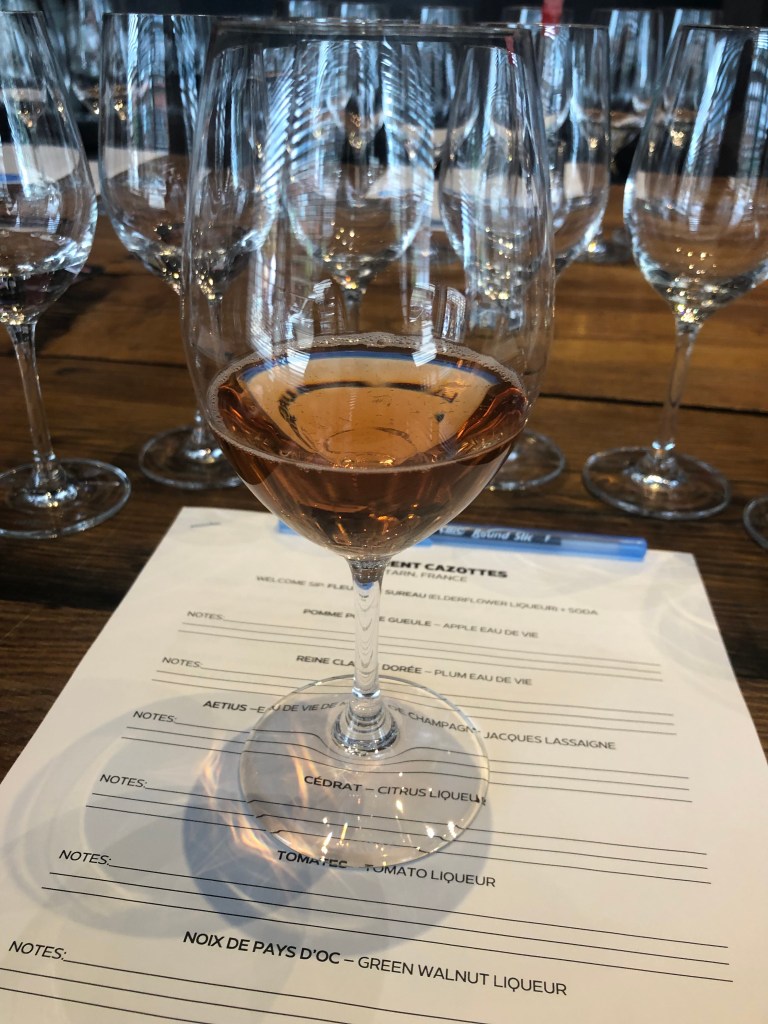 The Tomates (Tomato Liqueur, $66) is made from 72 varietals of tomatoes from the farm. Chen smelled sundried tomatoes and tased prunes. Erik described this liqueur as having lots of umami with a sweetness to it. He said that everyone’s experience influences what they taste, and what matters most is how the spirit feels and impacts you.