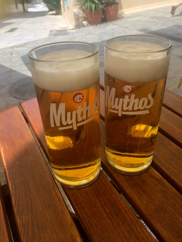 We walked over to Tzatzos and sat on the patio. L ordered two baklavas (€2) and two more beers (€3).