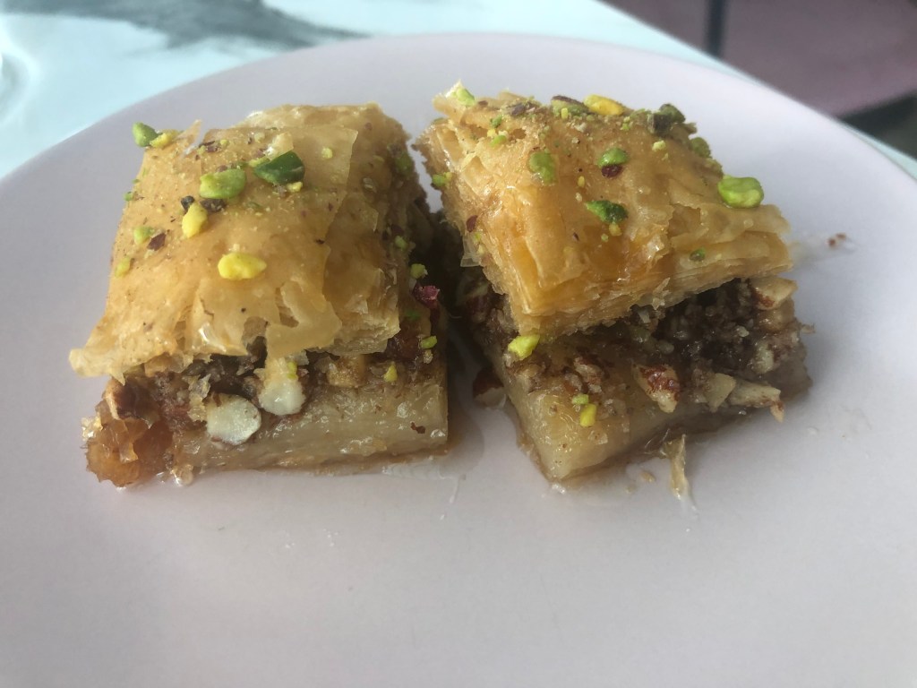 Holy smokes – the baklava at Tzatzos makes everything else I’ve tried before taste like sawdust. The honey was so light and sweet, more like nectar than the heavy stuff I’m used to in Calgary, Savino Pizzeria being the exception. The pistachios and almonds were toasty with a wood-like spice and the layers of phyllo pastry were light and brittle.