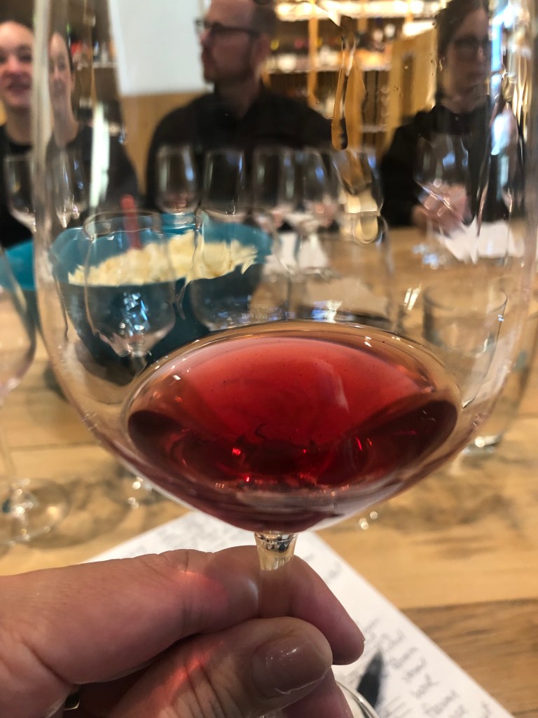 The fifth tasting was La Pause Gamay Noir ($37.95), which reminded me of the smell of a plastic Barbie doll. Turned said she smelled whiskey. I guess our lived experiences do influence what we taste in new wines.