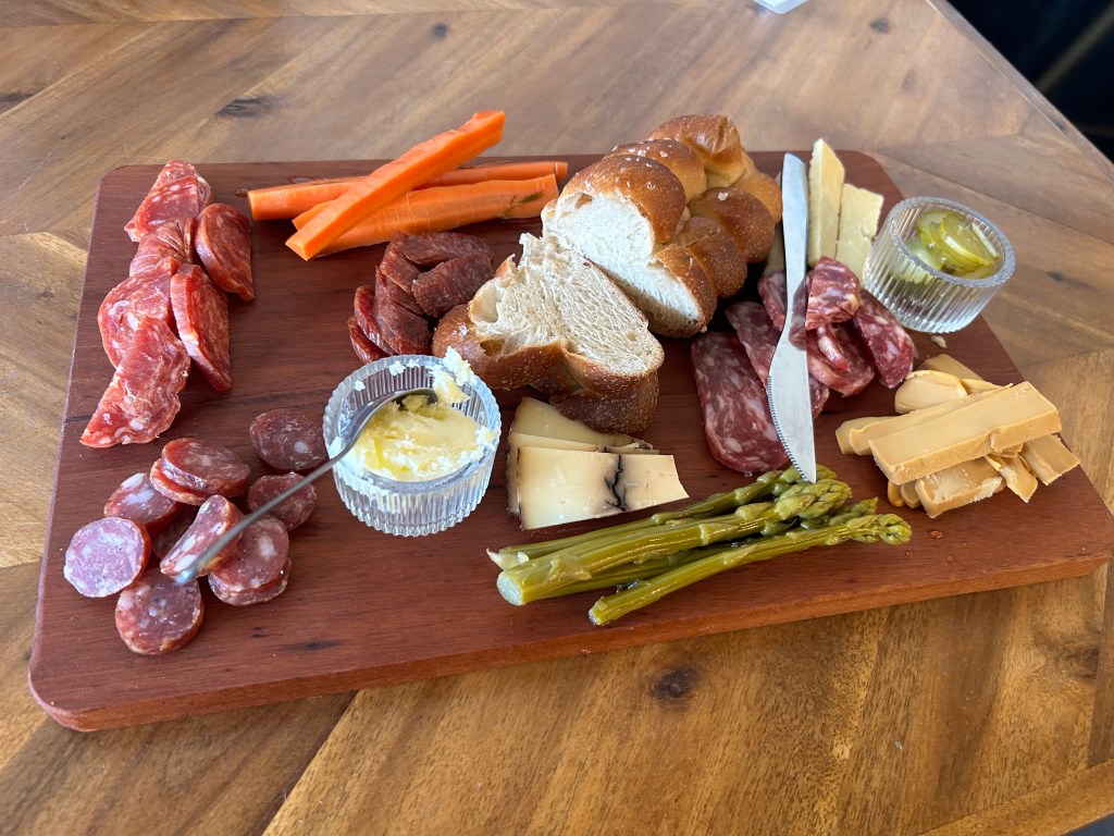 For meats, we sampled the Soppressata, Landjäger, prosciutto salami, and Mennonite sausage. Each meat was impressive – thick cut, chewy and delicious. I’m bringing L next time, as I know he would appreciate the selection of meats and cheeses.