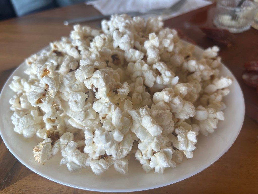 The homemade Amish bread was warm, and the hand-churned butter melted in my mouth. The bread is baked daily and brought out fresh from the oven. The bread is so good, I saw a customer buy some bread and butter to bring home. I like combining each bread piece with butter and meat or just butter and cheese. Bex.oxo loved the Ski Queen Whey, a Norwegian cheese which tastes like a cross between fudge and caramel. Her favourite combination was to eat the popcorn with the Ski Queen.