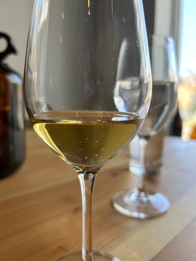 Next was the 2018 Domaine Marnes Blanches Savagnin Sous Voile from Jura, France ($75). Marnes Blanches is one of my favourite wineries; their wine is always a hit at my parties, as it is so easy to pair with melted Comte cheese. Lululemon could smell maple. While it smelled sweet, Erik described notes of camomile and fresh, dried and bruised apple. We learned this wine comes from 45+-year-old vines grown on marl and limestone. I loved this one so much that I bought a bottle, as did my friend. Erik recommended pairing this cuvee with something fatty and raunchy, like salty almonds or raw clams.