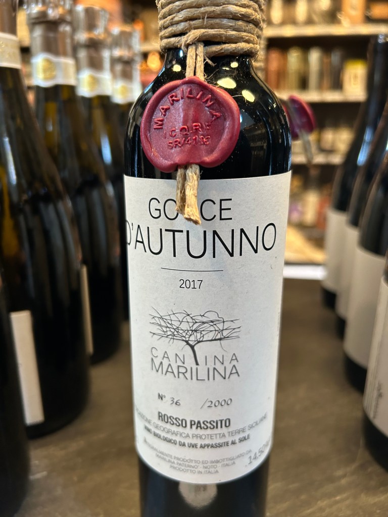 The dessert wine was a 2017 Cantina Marilina Gocce d’Autunno Passito from Sicily, Italy. Erik noted the “rapturous sunlight from Sicily” wine was baked under the sun for 10 to 15 days, and it is a bottle you could keep for a couple of decades.