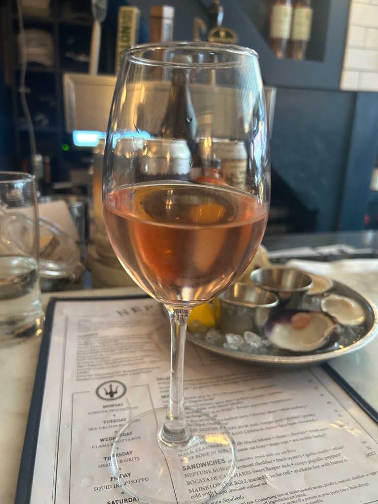 At around 2:30 p.m., I decided to check out Neptune Oyster. The wait was only half an hour, as there’s a sweet spot after lunch and before dinner when it’s less busy. The hostess was welcoming and told me I was lucky to sit at the bar as a friendly regular, and two employees were seated to my left. To my right were two women who looked annoyed to be next to me, even though they wanted to sit at the bar.