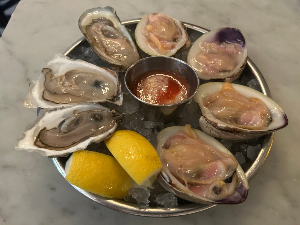 At around 1:00 p.m., I dragged my beloved to Neptune Oyster, but the line was so long that we wandered over to a pub for a beer and fries. By the time we returned, around 2:15 p.m., the line was shorter. We waited about 40 minutes, and in that time, I regaled the customers in front and behind me of the delicious gloriousness that awaited them at Neptune Oyster. I could tell that waiting in line exhausted L, as he was still tired from the day before, and my hyping up crowds under the scorching sun didn’t help.