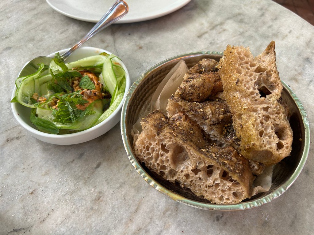 The Za’atar Bread ($11) was a ten out of ten. The bread is miraculous. Soft, light and spongy, the bread was salty from the Moroccan spices and walnut muhammara and fresh from the ribbons of cucumber and mint. I would get this again.