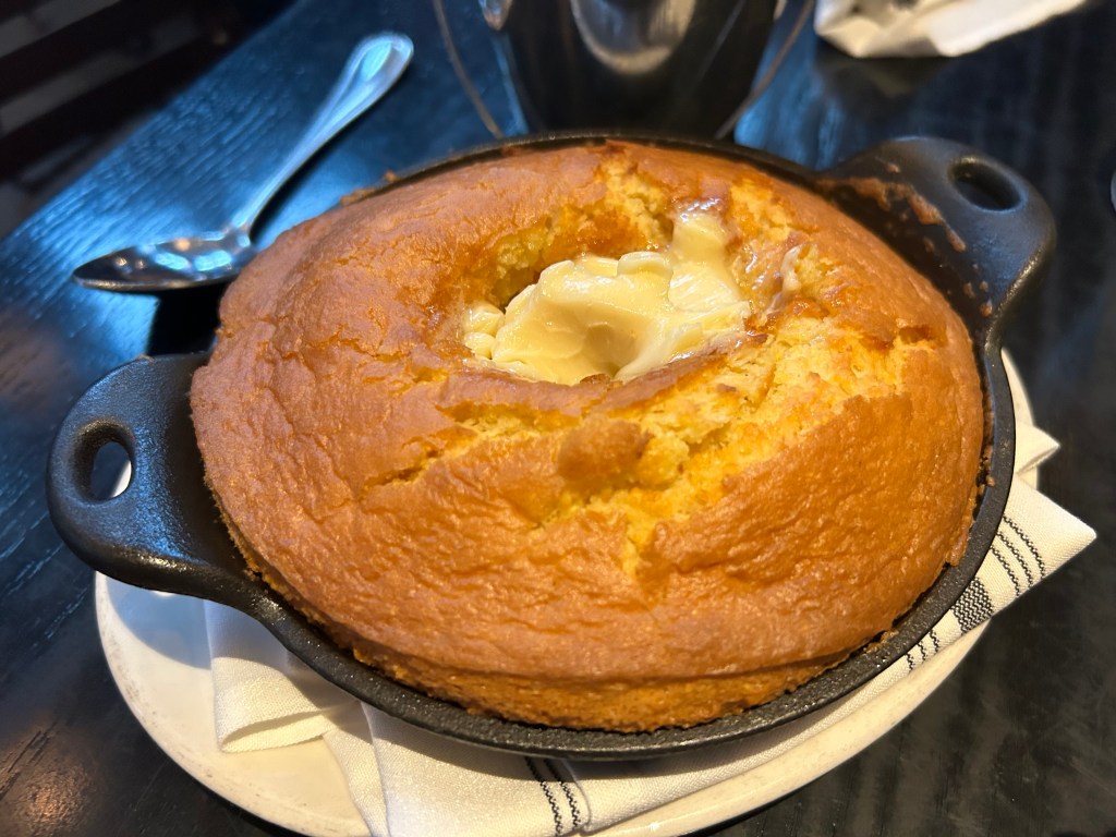 My mussels were small and ordinary. The sourdough bread was too hard to eat, but I enjoyed L’s cornbread, which arrived in a big cast-iron pan. Oh boy, the bread was light and sweet, fluffy and soaked in sweet maple butter. The portion was so large that L could only eat half, so I gobbled up the remainder. L thought the clam chowder was even better than Bostonia Public House.