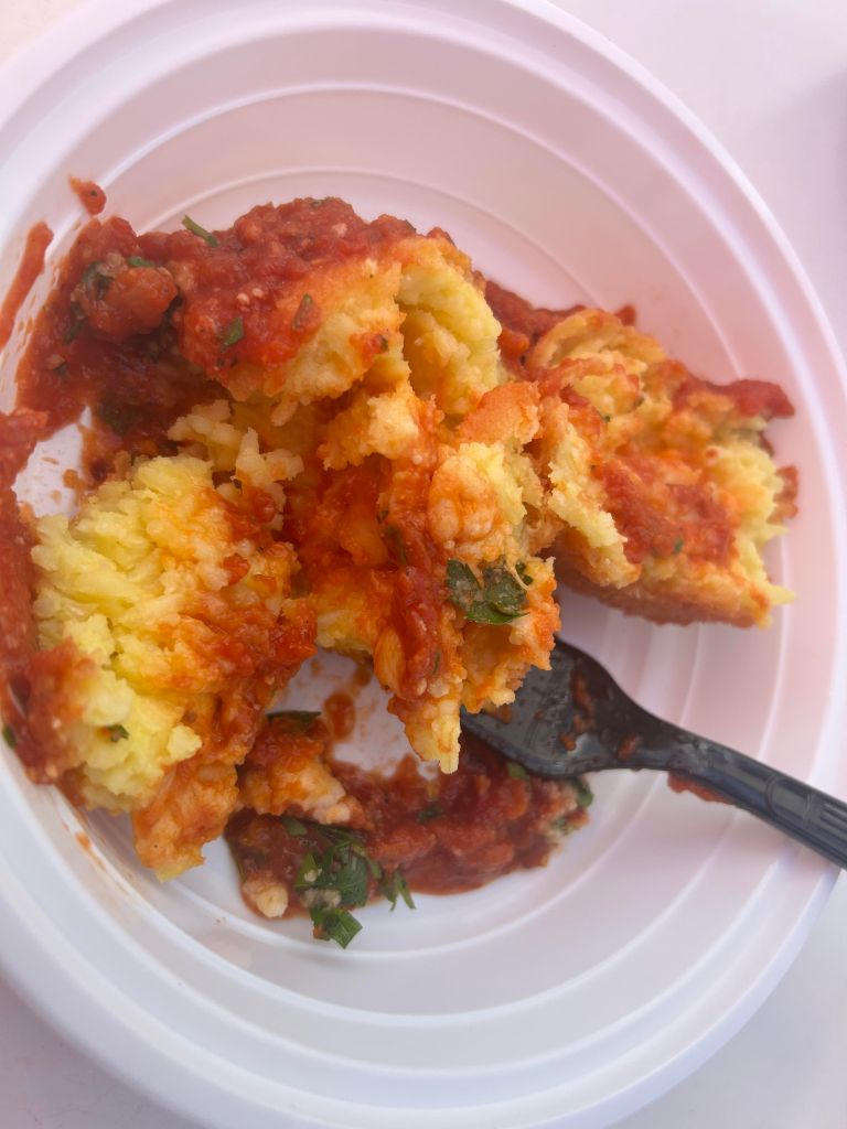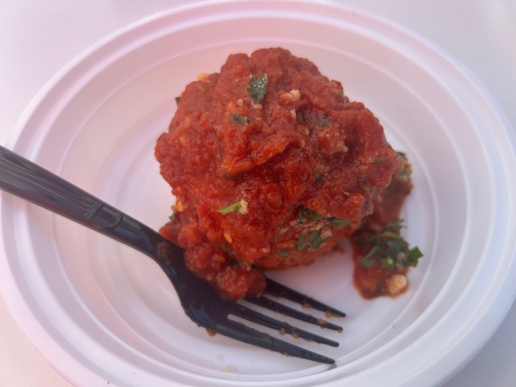 I also bought a frozen meat lasagna ($50), packages of my new favourite dried pasta, Risa ($2.19) and an Arracini ($8.50) to go. The arancini was crunchy and soft and mealy on the inside. The tomato sauce was bright and thick, with a vibrant zing.