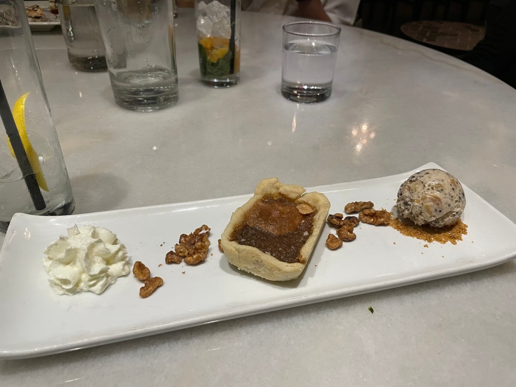 Care Bear ordered frozen cheesecake mousse ($10) for dessert, as it was gluten-free. Aphrodite and I also ordered the mousse but with the graham crackers. Happy picked the mint chocolate sandwich ($10), and Dimples ordered the best dessert of the group, the K/H butter tart ($8). She insisted I try some of her pastry. Oh wow – the crust was warm and flaky, while the combination of the whipped cream and sweetness from the ice cream was just good old-fashioned comfort food.