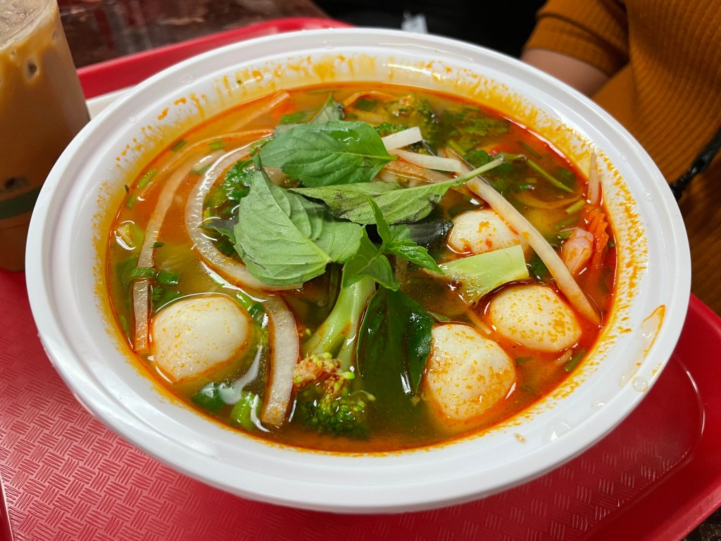 When we arrived, the food smelled so good and the company so fun I decided to forgo my walk and join them. Eating here would also mean getting closer to my goal of 19 banh mi dates, even though it wasn’t L taking me.