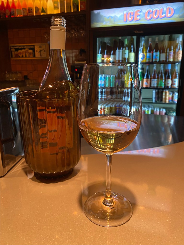 Divine Offering and I shared a bottle of Orenji Dormilona ($55). We would get a glass, but our bartender persuaded us it was a better deal to get the bottle. I found the wine juicy, fresh, and easy to drink. Divine Offering mentioned she had never tried orange wine before and would order this again.