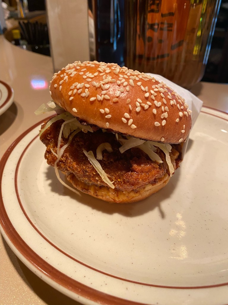 Divine Offering said her chicken sandwich was one of her favourites in the city, and it was a tie between this one and the Nashville hot chicken sandwich from Hi-5 Burger at First Street Market. She mentioned the batter was crispy, and the chicken was juicy. She didn’t find it too spicy or heavy, even though it was dripping with sauce and oil.