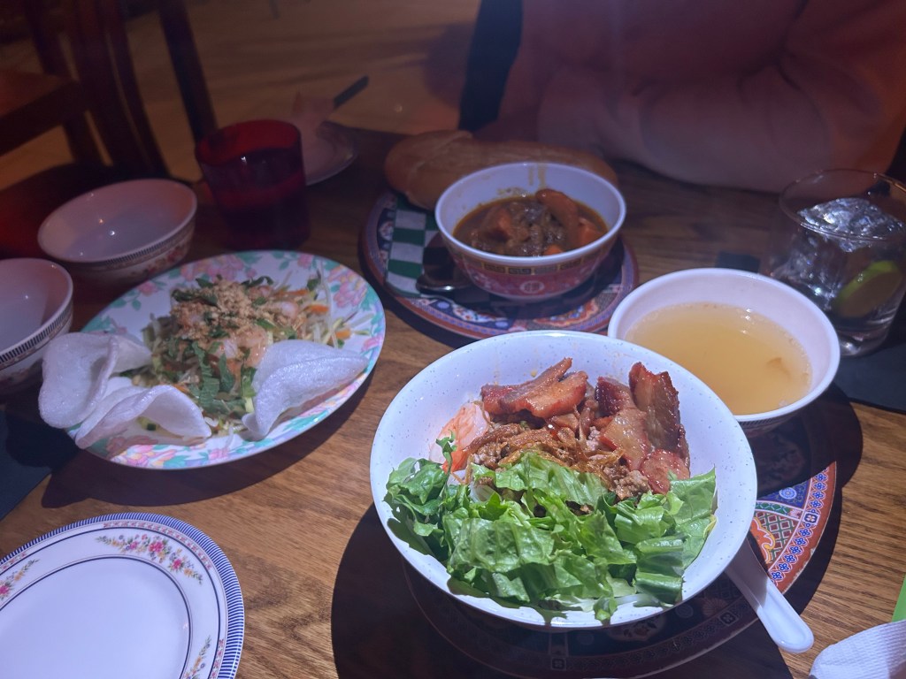 I wanted to order the “What’s the Kitchen Having ($14),” a rotating dish the kitchen makes for dinner. The salad greens were so fresh. The noodles were light and springy. Eating the greens with the noodles and meat reminded me of a Vietnamese bun with a different Asian twist, as the noodles were thicker, and the sweet char sui reminded me of Chinese food.