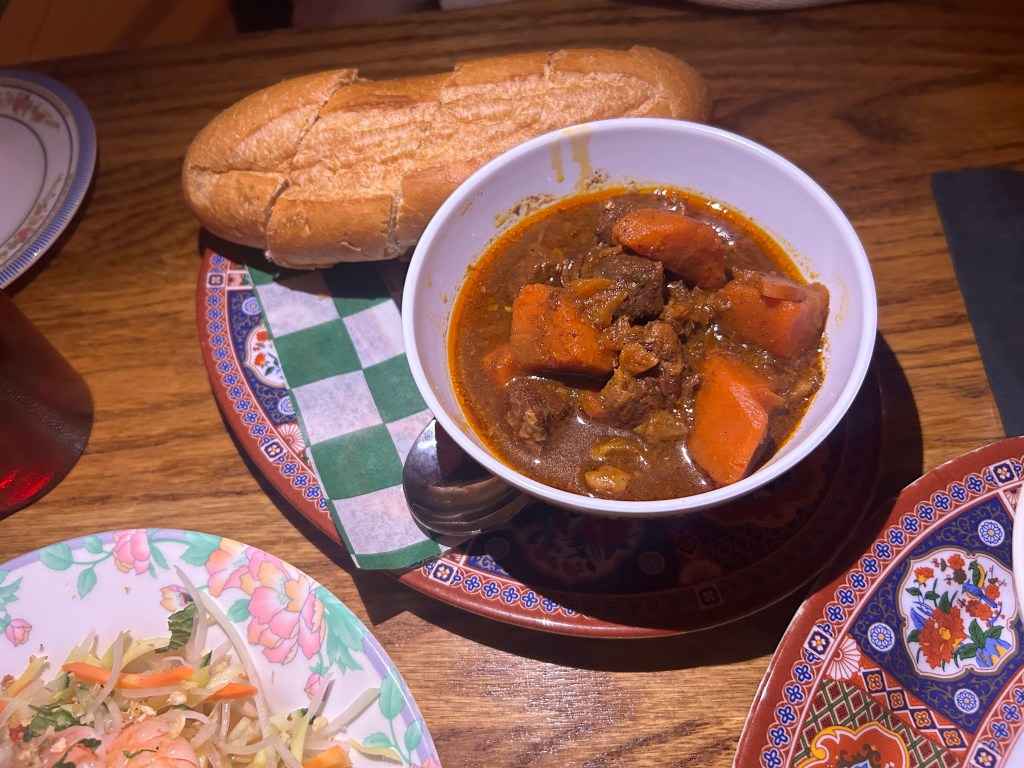 Chew Steel enjoyed the Beef Stew ($14). The beef and carrots were so soft that chewing wasn’t necessary. The rich gravy complemented the crusty baguette. The beef stew is the dish if you are craving a “meat and potatoes” type of meal.