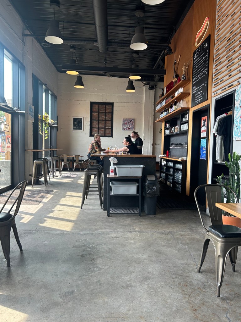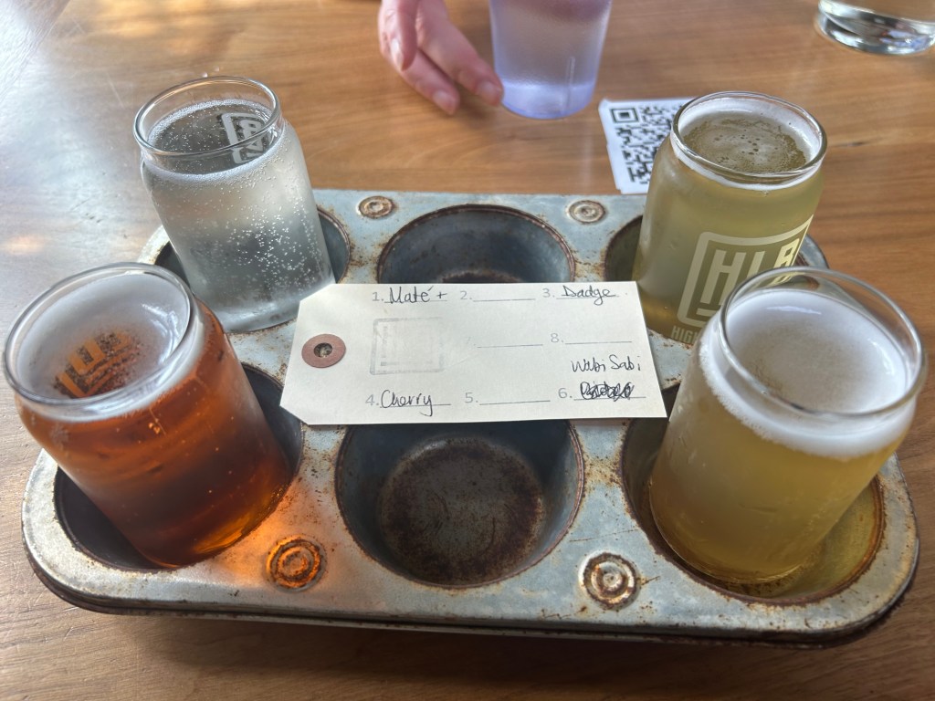 High Line Brewing is larger than it appears from the outside. Once you pass the front bar section, there are several rooms to sit and sip the afternoon away. You pay at the bar, grab your beer and then find a table. We first sat inside in a nook under a large tree before moving to the patio.