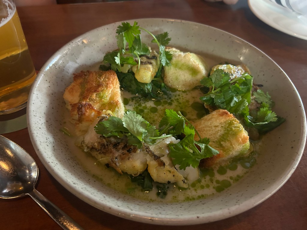 The food at Lulu is very good. The cod was tender and lightly sauced with coconut cream and curry. I enjoyed the fried brioche bread, which retained its crispy exterior despite sitting in a pool of sauce. There was just enough fish and bread for each of us to get a good portion.