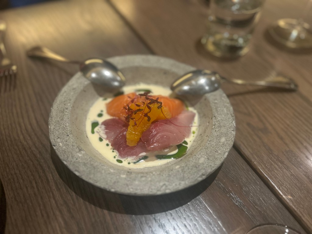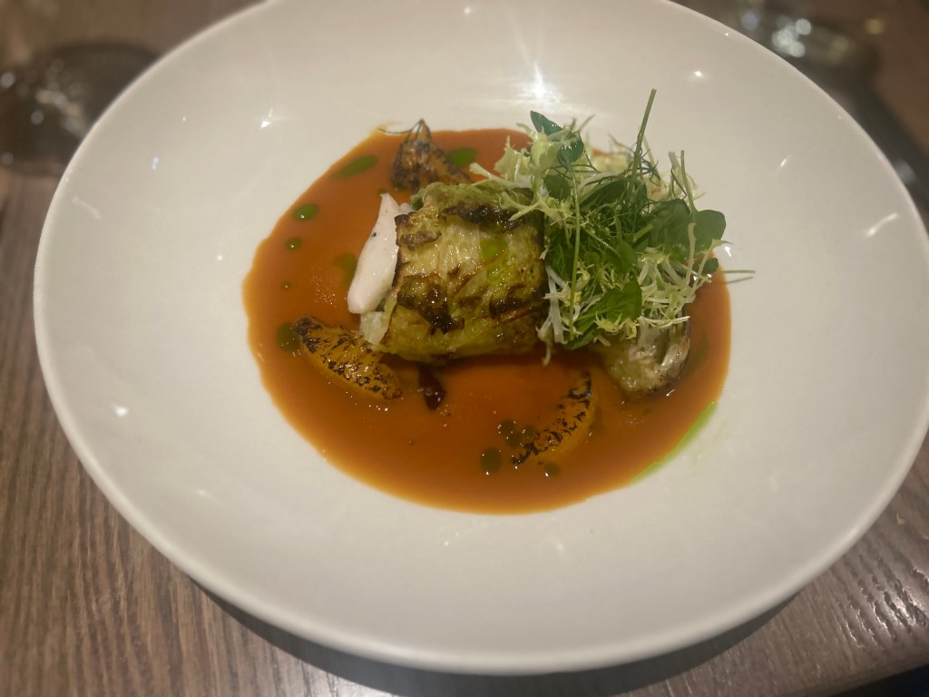 I picked the Cured Ora King Salmon & Hamachi Crudo ($26). Oh man, this dish gives my beloved Sukiyaki House a run for its money. The salmon was next level, cool in temperature and buttery in flavour. But it was the hamachi that stole the show. Its sweet, delicate white flesh left us raving. The miso, vinaigrette, and pomelo sauce struck the perfect balance, not too sweet, citrusy, or overpowering, just enough to enhance the fresh taste of the fish. Those little green beans couldn’t compete with the salmon and hamachi crudo. This dish is a winner and a keeper.