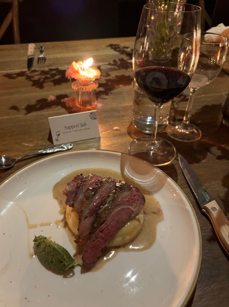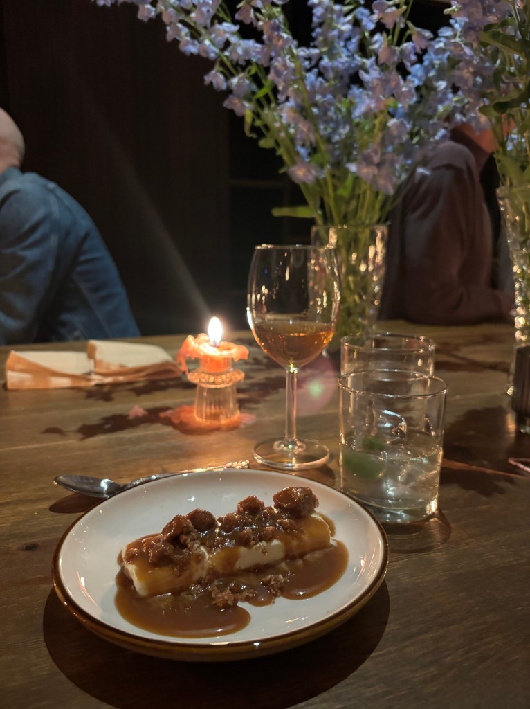 I thought nothing could outdo the mussels, but I had forgotten how well Garrett can cook a steak. The slow-roasted “delmonico” style steak was paired with a glass of contra soarda terra veneto rosso, a red wine from northern Italy. The peppercorn sauce was hot and full of flavor. The steak had a perfect chew, deep beefy richness, and a mouthwatering char. The whipped, buttery potatoes were smooth and creamy.
