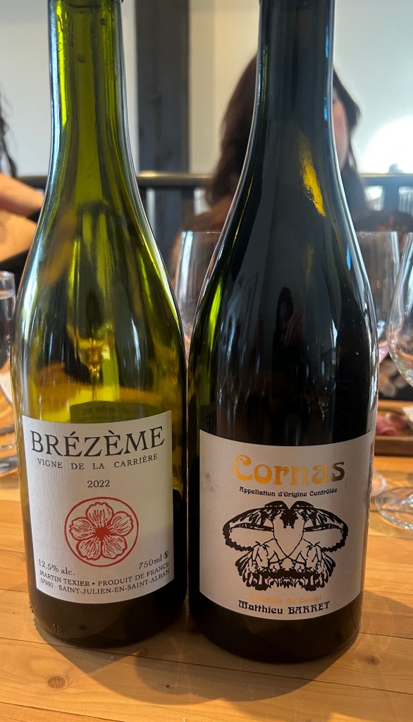 Erik is back in town! I saw on Instagram he was hosting Rhone Ragers ($50) at Vine Arts. I immediately called my trusty wine pal, Lululemon, to find out if she was up for some natural wines. Let’s listen to “Voulez-Vou” by Abba for this post.
