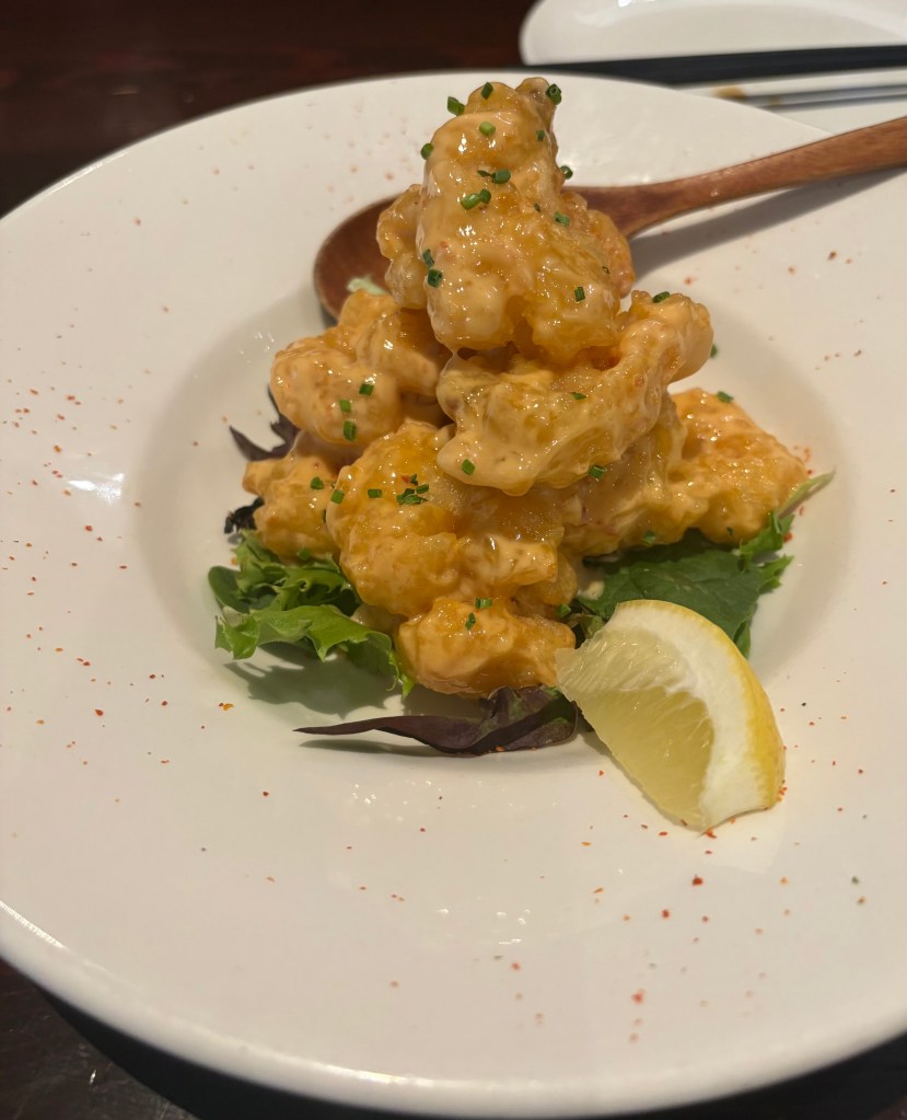 Narc enjoyed the fried shrimp, noting the generous ratio of shrimp to batter. I took a bite and noticed the flavour of sesame oil in the creamy sauce.