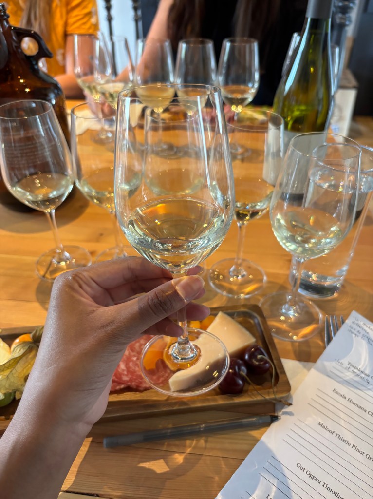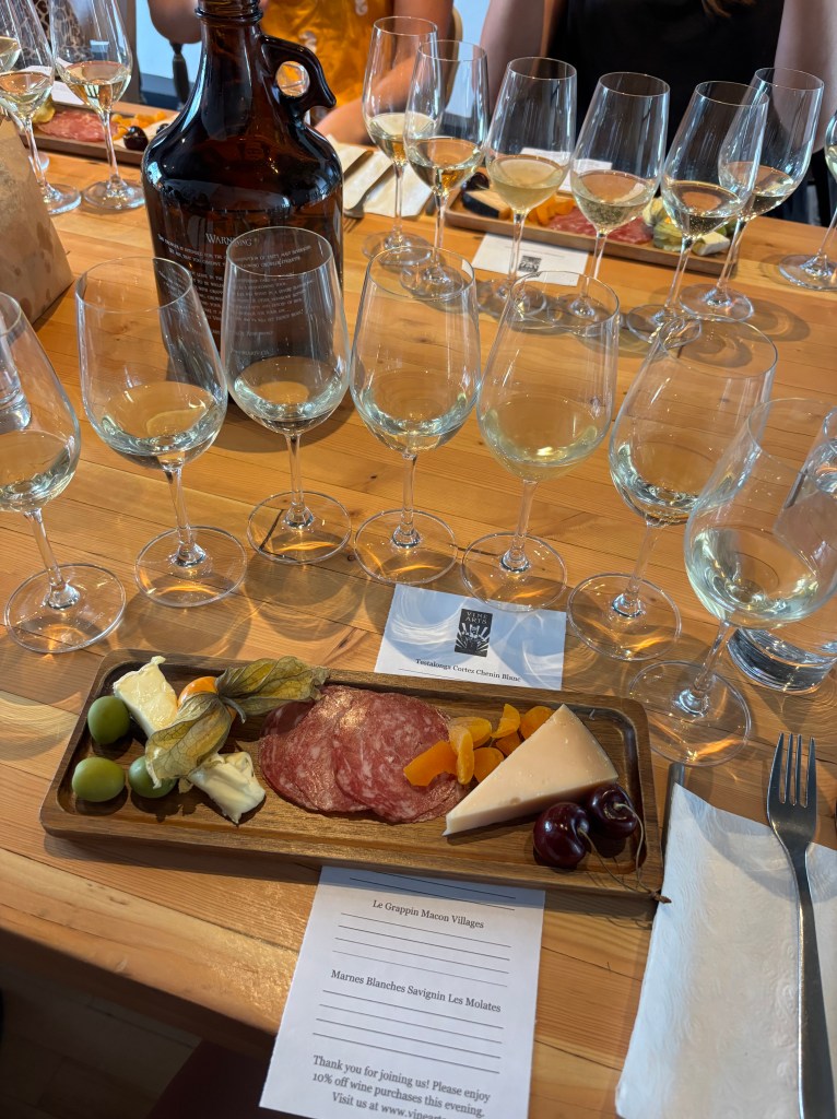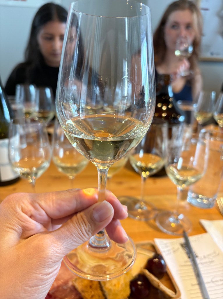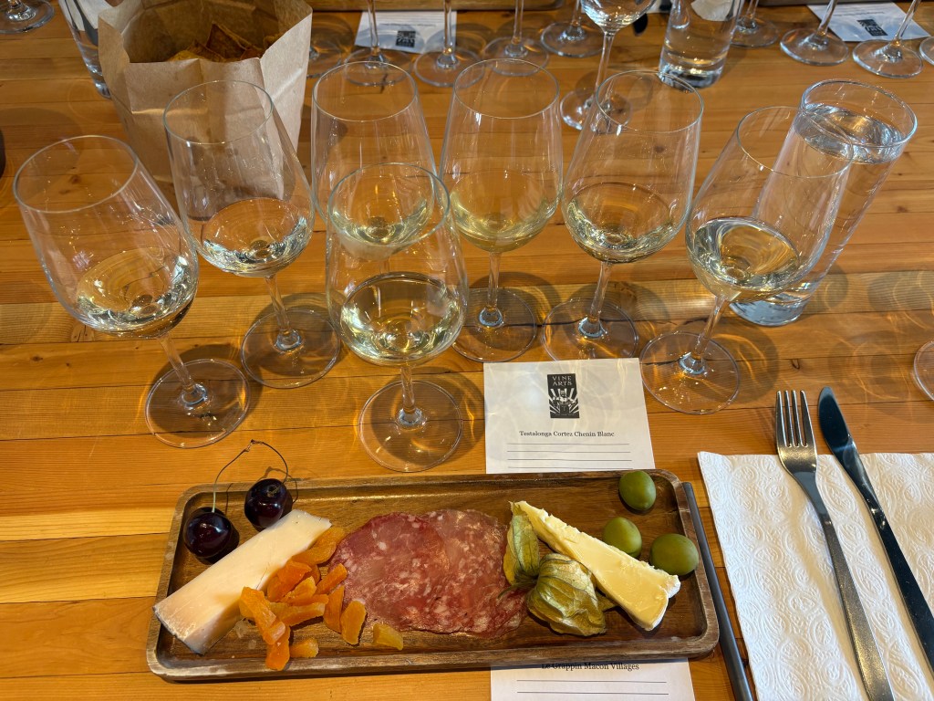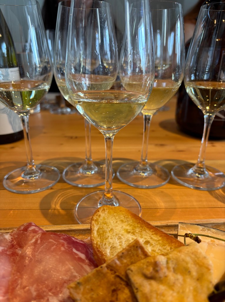My friend Divine Offering came this time, along with Lululemon. I wanted Divine Offering to meet Erik and Lululemon, as we are all taking a wine tour with Erik and Mark in 2026. We sat in the front of the tasting room, where we soaked in the sun-filled room and the shining variety of white wines, varying in minerality.